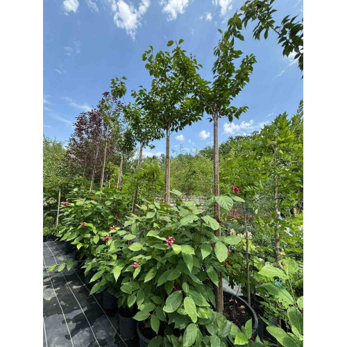 Сакура Kanzan на штамбі — це ідеальне поєднання витонченої форми та вибухового цвітіння. Кожної весни це дерево стає центром уваги, вкриваючись сотнями пишних, немов зефір, рожевих квіток.
